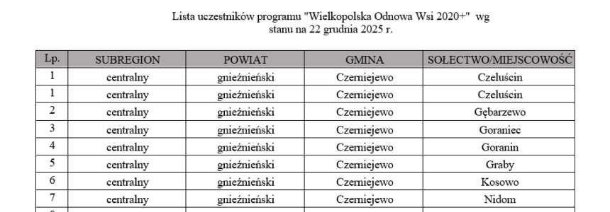 Obecnie w programie „Wielkopolska Odnowa Wsi 2020+” uczestniczy 2 240 sołectw oraz 22 miasta (do 5 tys. mieszkańców) z terenu 190 wielkopolskich gmin. Aktualna lista uczestników (2,12 MB,[...]