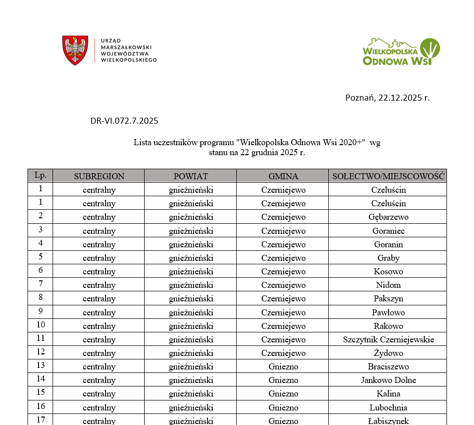Aktualności , Program , Wykaz sołectw (aktualny) grudzień, 2025